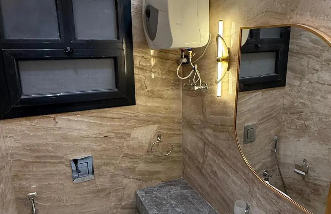 Staying at شقة Vip للايجار بكومبوند ازاد التجمع الخامس امام الجامعة الامريكية, guests have access to a balcony equipped with air conditioning and a washing machine.